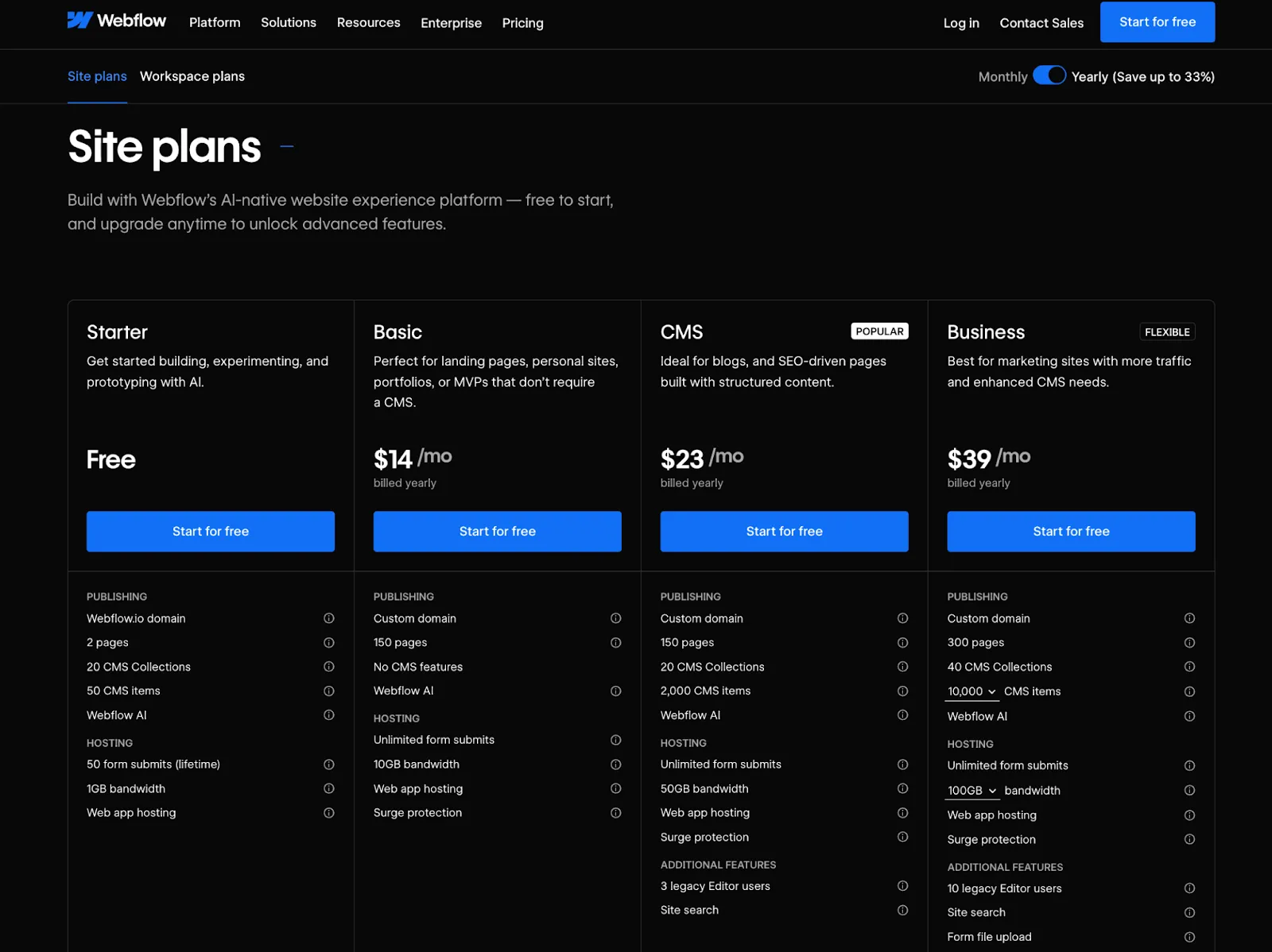 Here’s what’s included in Webflow: