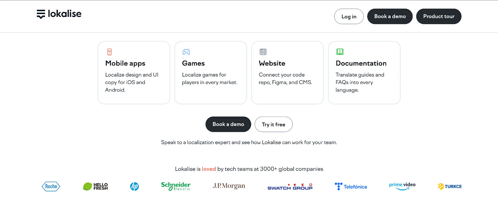 - Social proofs (logos and testimonials) are risk reducers. Lokalise doesn’t just say “trusted by companies worldwide”. They drop JP Morgan, Prime Video, and Schneider logos right under the headline and CTA buttons.