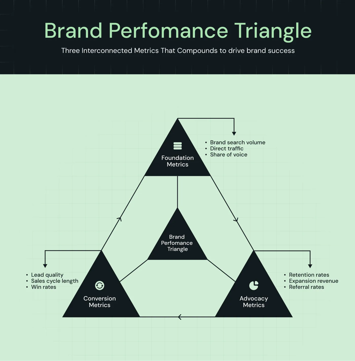 The magic happens when these metrics compound. Higher awareness drives better consideration, which drives stronger advocacy, which drives more awareness. It's a flywheel effect.”