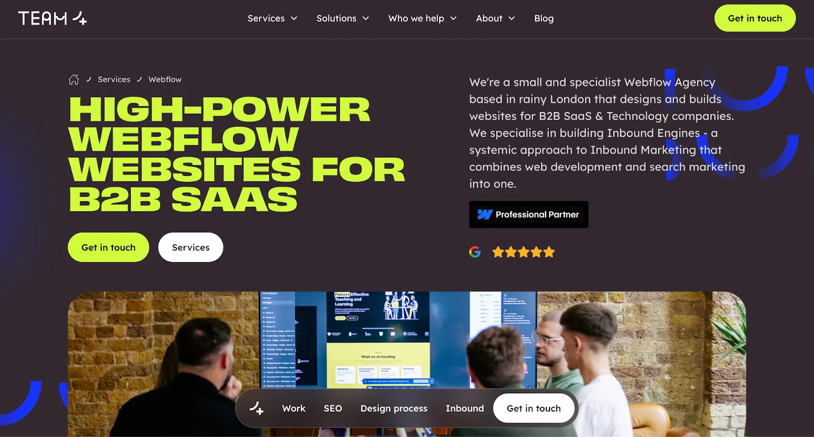 Team 4 positioned themselves as London’s specialist Webflow agency for B2B SaaS companies that understand growth comes from organic visibility, not just paid acquisition. Their tagline says it all: ‘High-POWER Webflow Websites for B2B SaaS SEO’.